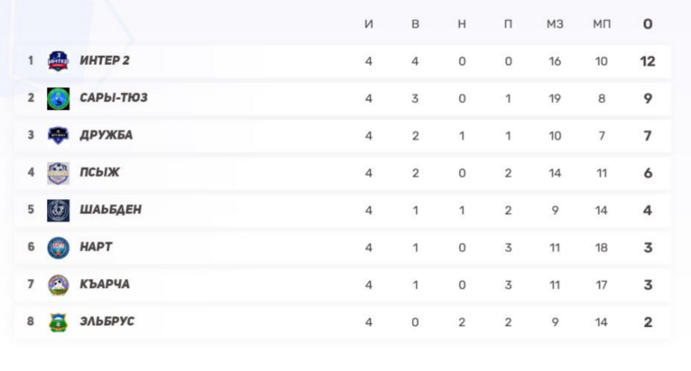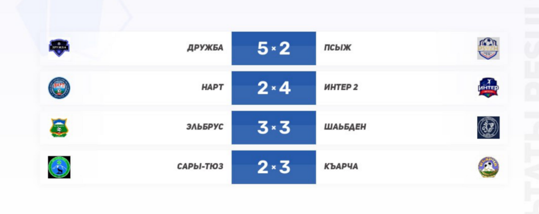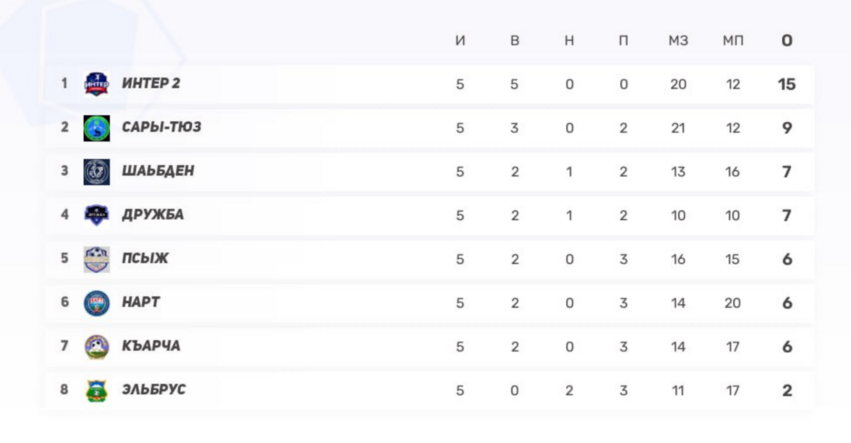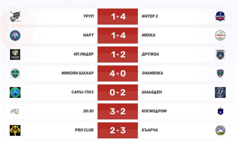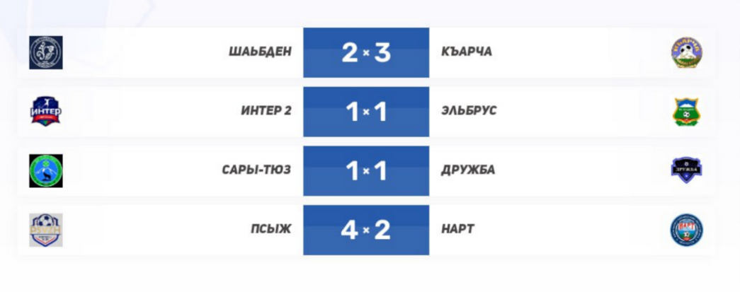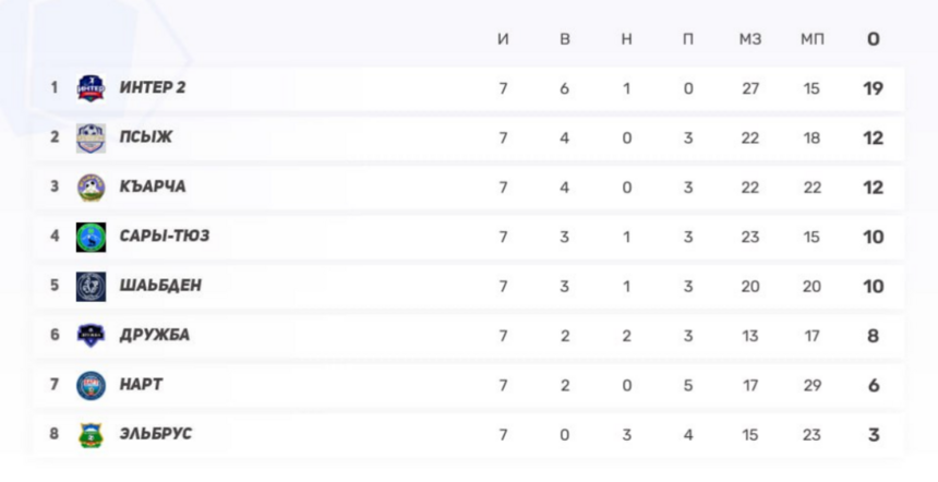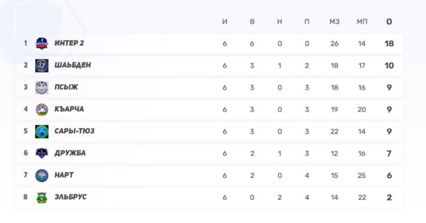 Итог тура: «Интер-2» удерживает корону, середина таблицы взорвалась, «Псыж» обязан ответить в следующем туре, а «Шабден», «Къарча» и «Нарт» уже подают голос. В этом чемпионате нет проходных — каждое очко на вес золота.