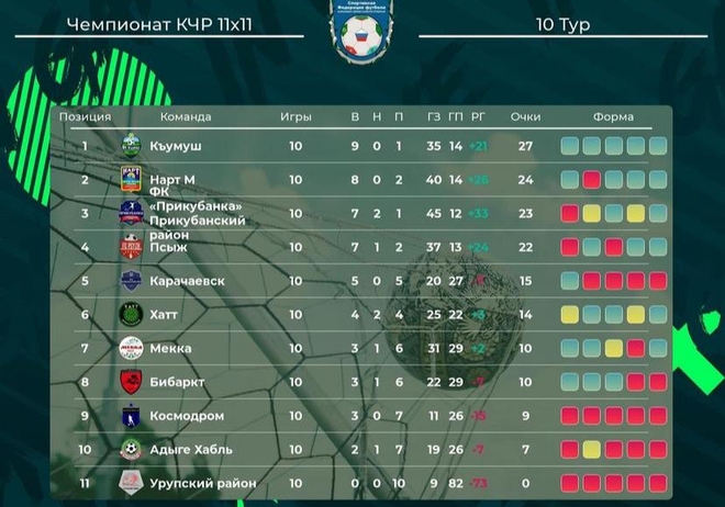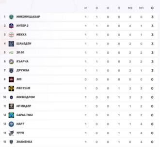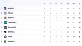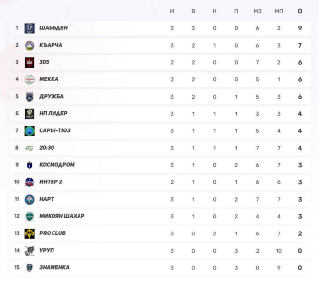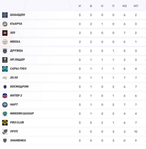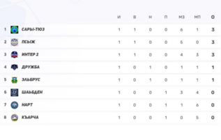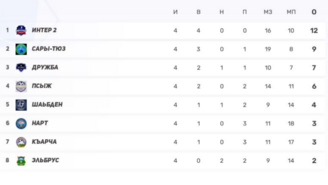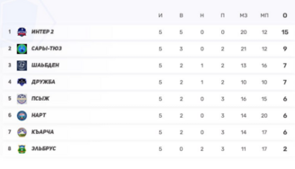 5–7) Псыж, Нарт, Къарча — по 6 (2-0-3) — любая следующая победа подкинет вверх.