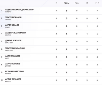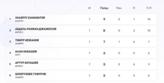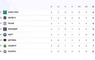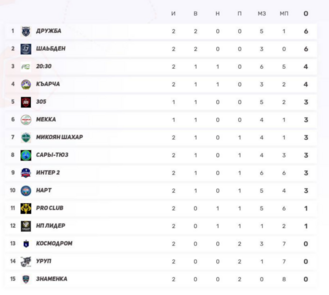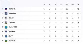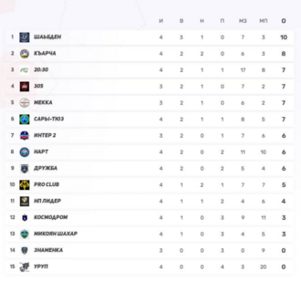 2) Сары-Тюз — 9 (3-0-2, 21–12) — самая забивная команда лиги преследует лидера.