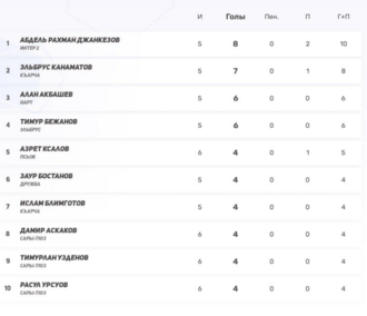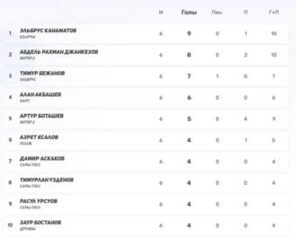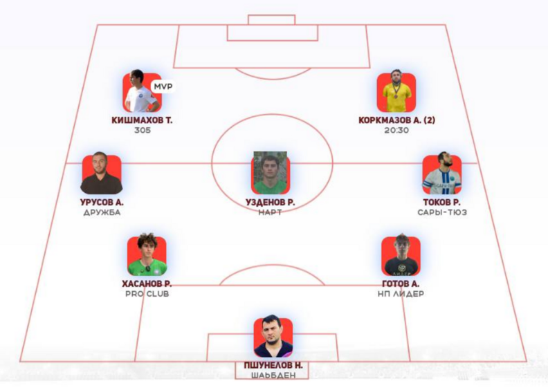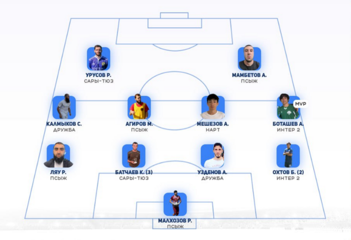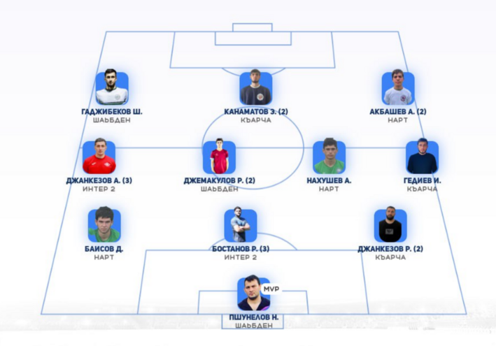 Символическая сборная 5-го тураВ топ-11 попали игроки Шаьбдена, Къарчи, Нарта и Интер-2 — именно они задали тон туру.