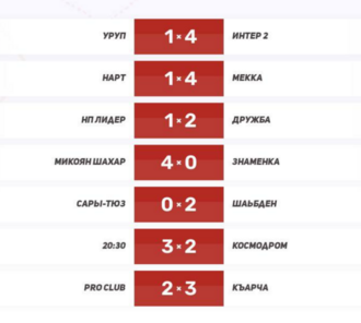⚡️ Сары-Тюз – Интер-2 2:4 — центральная афиша и классика жанра: «Интер-2» выдержал прессинг, забил в ключевые моменты и продлил идеальную серию.